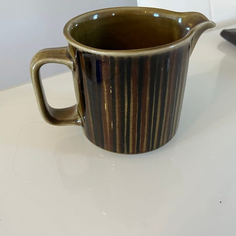 Kuvissa näkyvä hyväkuntoinen Arabia Kosmos pieni kannellinen vuoka, tai ehkä sokerikko? Väri vihreänruskea. Vuoan halkaisija on 13cm ja korkeus ilman kantta n. 5cm, kannen kanssa n. 9cm.