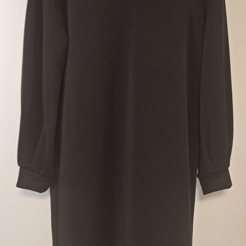 Myynnissä tyylikäs mekko ,koko XL , täysin pitkä ,noin 130cm ,sivussa yhdellä puolella aukko. Lantio mitta noin 110cm.Ei ole poolo, mutta kuten kuvassa näkyy, korkea kaulus. Ryhdikäs kangas ja pysyy muotona. Ei villa allergisille kuten minä -sisältää 5% villaa.