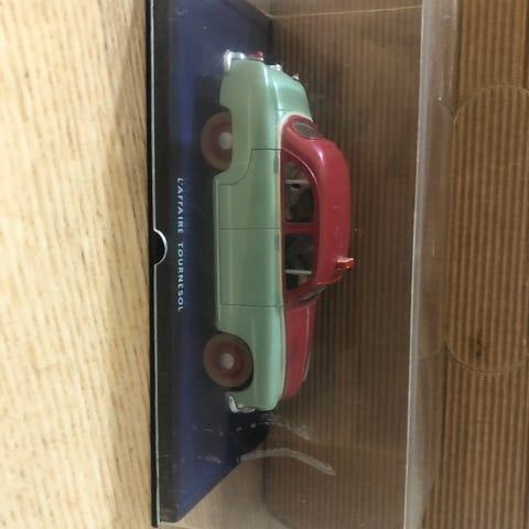 Tintti keräilyauto mustan kullan maa. Mallin aluslevyssä on teksti 'TINTIN AU PAYS DE L'OR NOIR' ja valmistajan merkintä ©HERGE-MOULINSART.