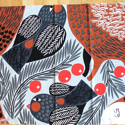Kuvassa näkyvä Ketunmarja-kangas, 145x36cm.