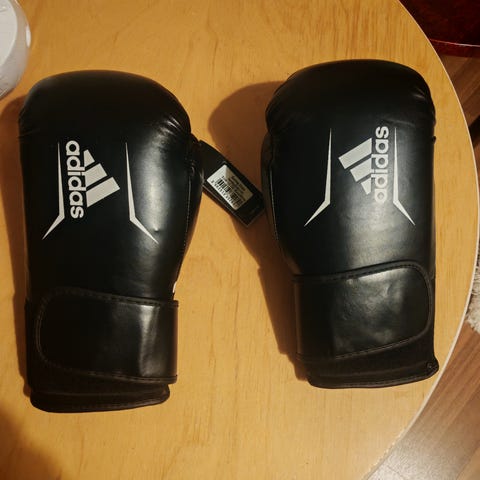 Myydään lähes käyttämättömät Adidaksen nyrkkeilyhanskat ja käsisiteet.