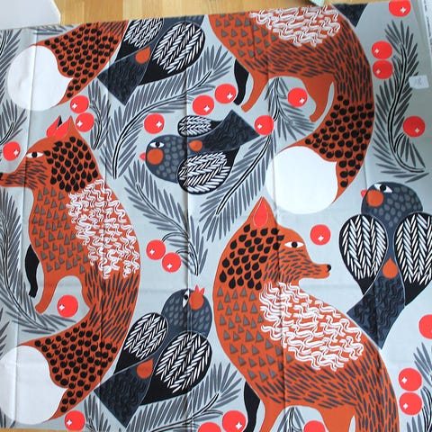 Kuvassa näkyvä Ketunmarja-kangas, 145x51cm. Tämä väri on khaki/tummanvihreä muista ilmoituksista poiketen.
