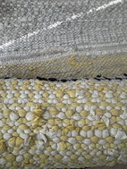 Räsymatto 300x80, keltainen/musta/valkoinen. Pesty ennen myyntiä. Käytön jälkeä, mutta toimii hyvin vaikkapa parvekkeelle. Konekudottu.