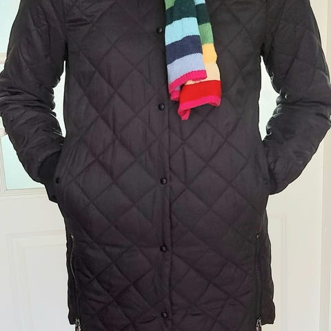 Hyväkuntoinen musta muutaman kerran käytetty, tikkitakki, talvitakki