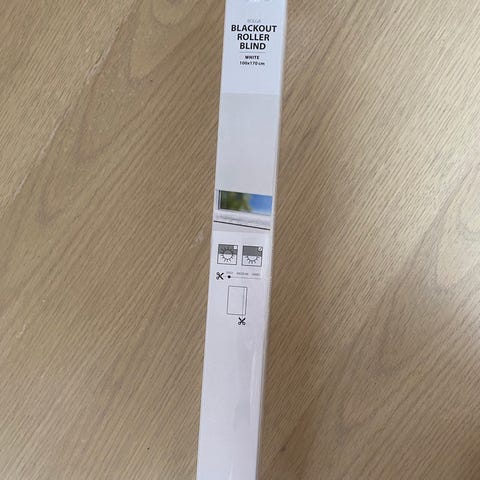 Vaaleanharmaa, lehtikuvioinen pimentävä verho. Rypytysnauha, jossa myös tankokuja.