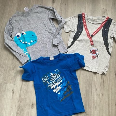 Spiderman-teeppari x 2, koot 128cm ja 116/122cm, HUOM. jälkimmäisen koko todella reilu, käytännössä samaa kokoa kuin 128cm, paita etualalla kuvan oikeassa alareunassa