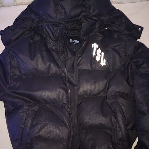 Musta t-paita Trapstar tekstillä, ei ole aito. Koko S.