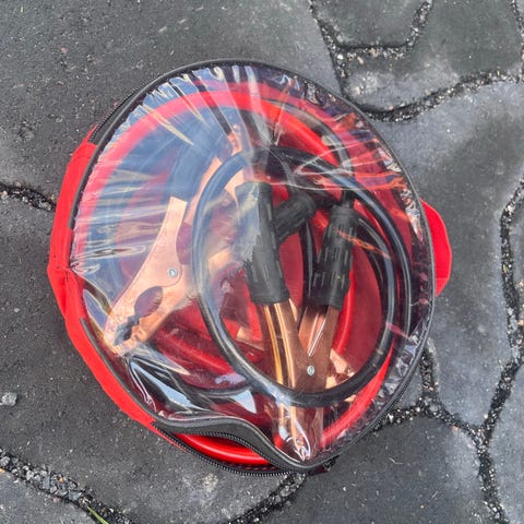 Käynnistyskaapelit, väreinä punainen ja musta. Käytettävissä auton akun varaamiseen tai käynnistämiseen. Kaapelit on valmistettu sähköä johtavasta materiaalista ja niissä on tukevat puristimet.