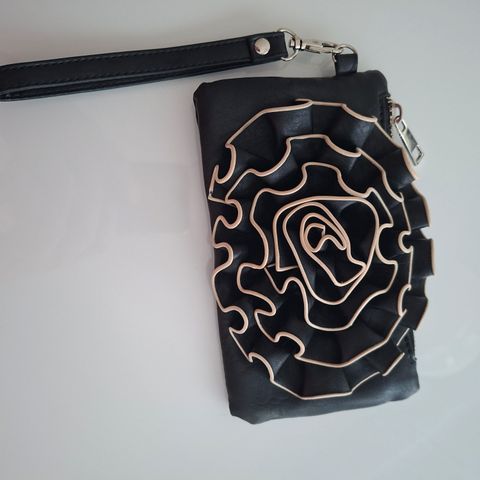 Käyttämätön söpö käsilaukku, musta-puna-valkoinen.