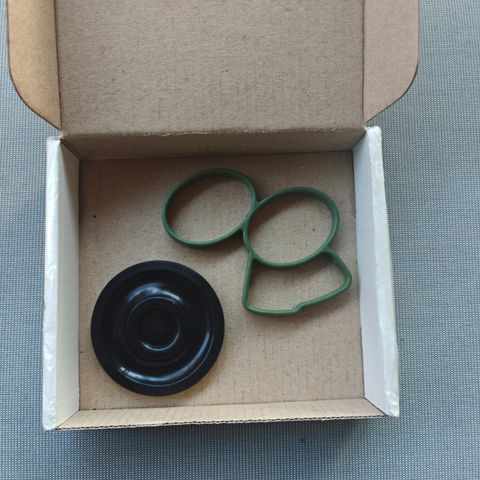 Uusi ja luonnollisesti käyttämätön öljynsuodatin ja kannen O-rengas.