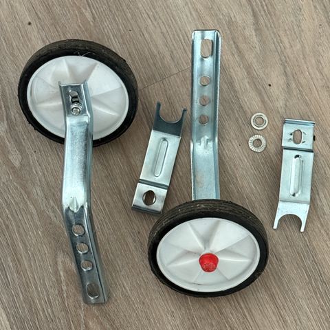 Pyörän apupyörät mustaa terästä, sopivat lasten pyöriin tasapainon tukemiseksi. Mukana kiinnitystelineet.
