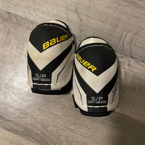 Myydään Bauer Supreme Pro kyynärsuojat. Teknisesti ovat vielä hyvässä kunnossa, mutta kokoteksti on kulunut pois ja pientä käyttökulumaa löytyy. Todennäköisesti sopivat alle 122 cm käyttäjälle, meillä olivat muistaakseni käytössä 5-7 -vuotiaalla tytöllä.