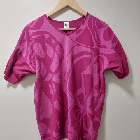 Nanson pinkki t-paita kukkakuviolla. Koko XL, kokolappu leikattu irti. Hyvä siisti kunto!