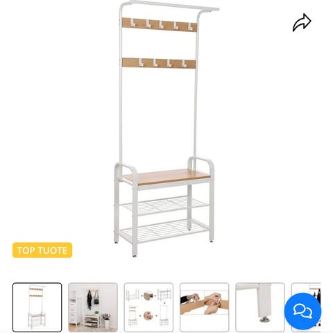 Hyvässä kunnossa oleva naulakko ja neljä koukkua.