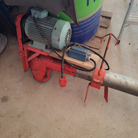 Tuhtin n.5m pitkä ja halkaisia 10cm. Kierukka. 1,5Kw Strömpergin moottori.