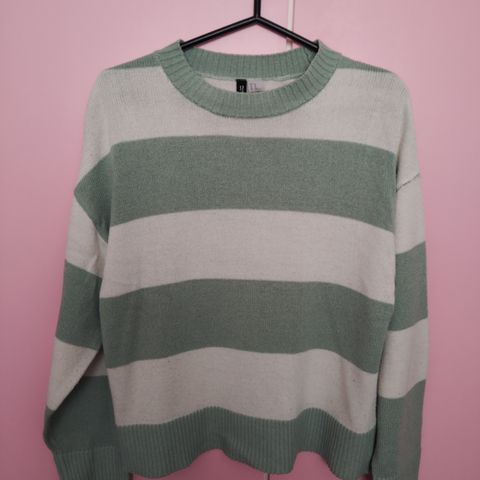 Diy ompelijan siististi tekemä vihreä luonnon valko raidallinen t-paita koko S, hyväkuntoinen