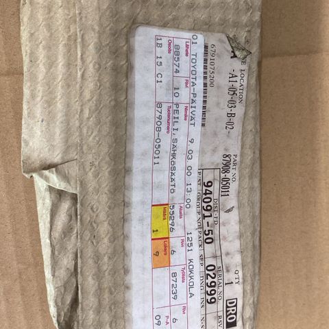 Myydään Toyotan uusi ja alkuperäinen osa, osanumero 87909-05011 (MIRROR SUB-ASSY, LH, (MIRROR SUB-ASSY, OUTER REAR VIEW, LH), Vasen peilinlasi (Ei lämmitystä). Sopivuus: