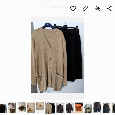 Kevyt ja hieman läpikuultava neulos, vinoraitainen tekstuuri sekä vyötäröllä kiristysnyöri metallikoristeella. Malli on ajaton ja toimii hyvin esimerkiksi alusmekon kanssa.