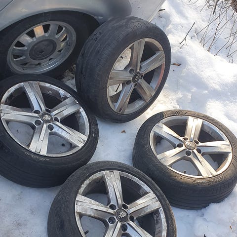 Renkaat ja vanteet käytettyjä, kuvissa näkyvät kunto ja malli.