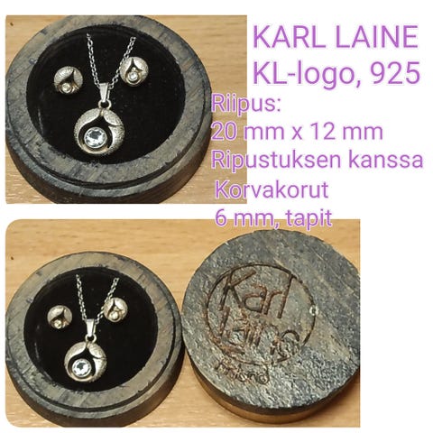 KARL LAINEEN hopeakoruja, rannekoru, sormus, riipus, korvakorut
