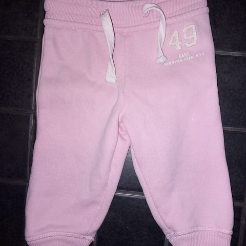 Gantin tummansiniset collegehousut koossa 62. Siisti kunto. Tekstissä ihan pientä halkeamaa.