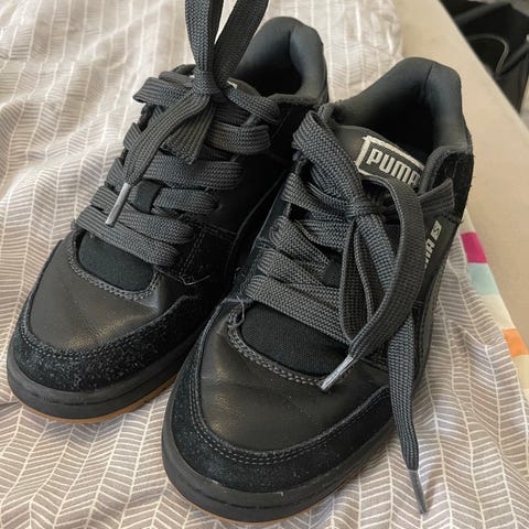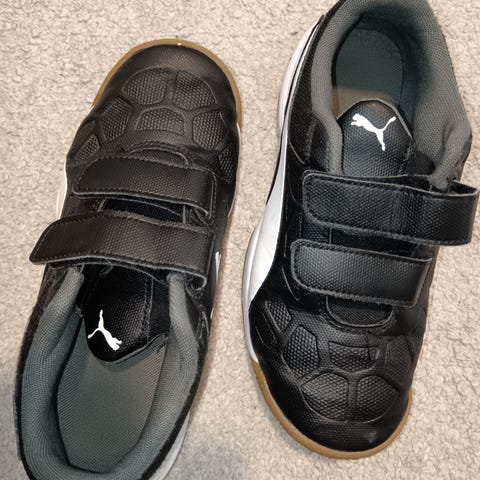 Myyntiin vähäisellä käytöllä olleet Puman sisäpelikengät. Ovat ehjät ja siistit. Pohja kauttaaltaan vaalea.Tuuletettu seuraavaa käyttäjää varten. Hinta 6€