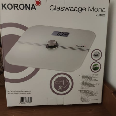 Korona Mekaaninen Vaaka valkoisella rungolla. Mittaa painon kilogrammoina. Mekaaninen toiminta ilman paristoja.