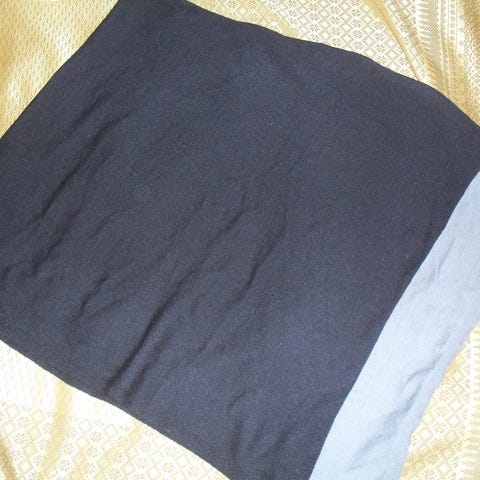 Tällaista ei taatusti tule toista vastaan! Tuo epäsymmetrisyys näyttää kuvassa hassulta, mutta päällä kiva. Materiaali varmastikin jotain keinokuitua, on varsin kevyt ja laskeutuva. Tällä saa hauskaa ja helppoa vaihtelua pukeutumiseen ja lämmikettä tai peitettyä monta asiaa ;)