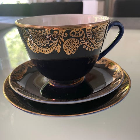 Sinikukkaisia kuppeja ja tasseja, vintage