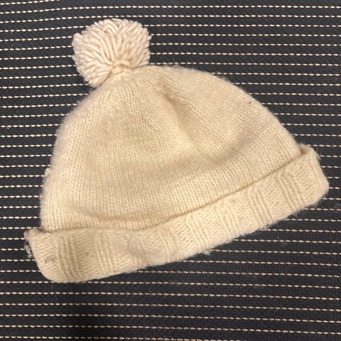 Valkoinen virkattu hattu. One size, aikuisen päähän sopiva.