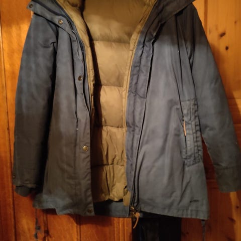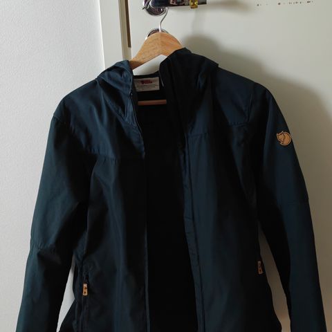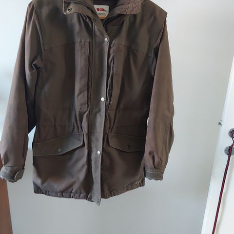 Laadukas Fjällrävenin takki ulkoiluun, retkeilyyn ja arkeen. Korkea kaulus, jonka sisällä tilava huppu. Naisellinen istuva leikkaus ja hyvin pituutta sekä hihoissa että helmassa. Siisti ja ehjä takki. Väriä vaikea saada kuviin toistumaan oikein, ensimmäisessä kuvassa lähinnä sitä mitä luonnossa eli neutraalit vihertävän ruskeat sävyt (ei räikeä).