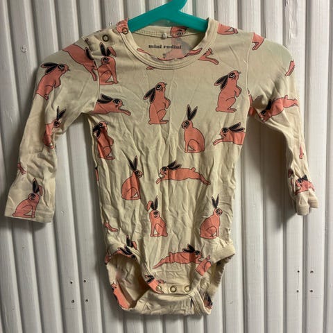 Myydään kuvien mukaisessa kunnossa oleva Mini Rodini yksisarvinen heppa body 68/74 hevonen