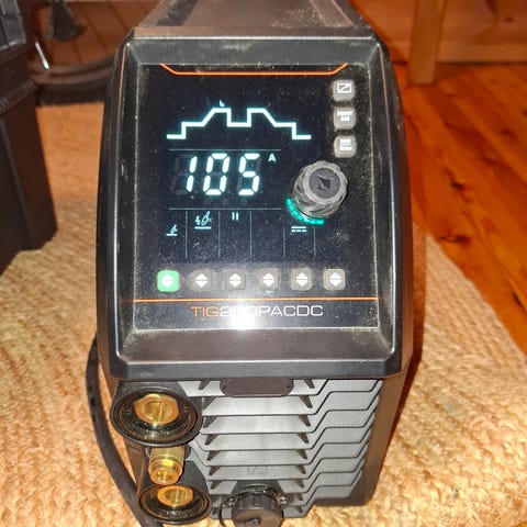 Muutaman vuoden käyttämättä ollut tig hitsauskone. Mukaan 40l argon suojakaasupullo (katsastettava ja täytettävä). Lisäksi hitsauslankoja.