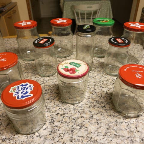 2 kpl hyväkuntoisia umpio lasipurkkeja, kannessa tiiviste, yht. 6 e