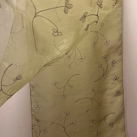 Myydään huivi. Huivissa ei ole materiaalimerkintää, mutta tuntuu käteen polyesteriltä.