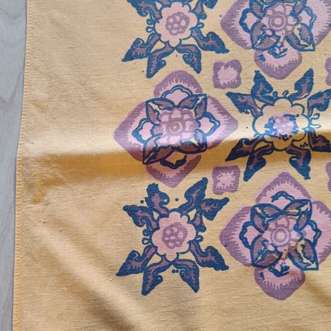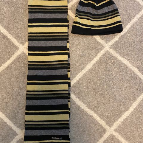Myydään Marimekon iso puuvillahuivi. Reunat on harmaat ja keskellä on pilkkukuvio.