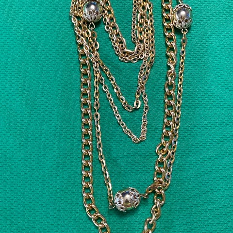 Myydään kaunis kullansävyinen muotikoru-kaulaketju. Kokonaispituus noin 55cm säädettävällä jatkoketju. Papukaijalukko. Isot, ovaalin muotoiset lenkit. Käytetty hyvä kunto, siistikuntoinen