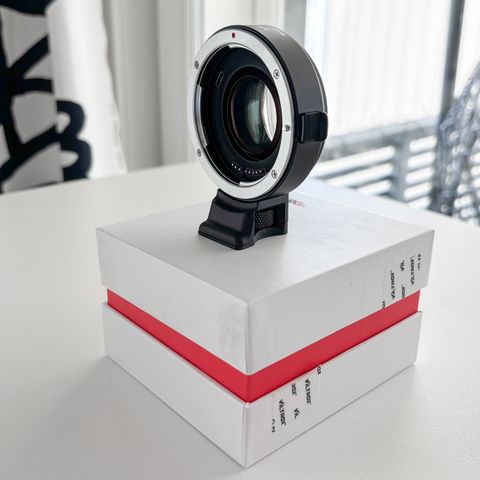 Myydään Viltrox EF-M2 II 0.71x Speedbooster EF/EOS-M -sovitin, jonka avulla EF-objektiivit voidaan kiinnittää EFM-kiinnitykseen. Sovittimen ansiosta saadaan suurempi aukko ja lähes vastaava polttoväli.