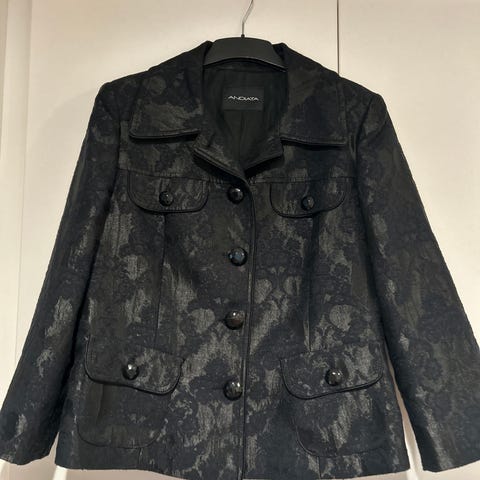 Laadukas Italialainen materiaali, väri meleerattu beige/harmaa. Vuoritettu jakku, kevyet olkatoppaukset.