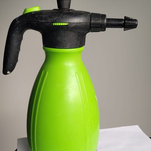 Uutta vastaavassa kunnossa oleva ruiskupullo, tilavuus 15 litraa, valmistettu valkoisesta ja sinisestä muovista. Käytetään nesteiden ruiskuttamiseen, varustettu kantokahvalla ja suuttimella. Sauna pesty ja ei käytetty liuottimia. Puhdas ja hajusteeton.