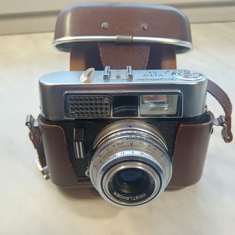 Myydään kuvien mukaisessa ikäisekseen siistissä kunnossa oleva Voigtländer Vitoret F -filmikamera. Mekaanisesti toimiva kaikilla aukoilla ja suljinajoilla, filmin kanssa ei testattu.