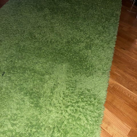 IKEA matto vihreän värinen. Matto soveltuu sisätiloihin ja tarjoaa pehmeän pinnan lattialle. Lyhyt nukka, lemmikkitalous.