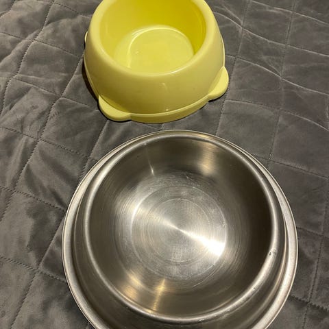 Hyväkuntoiset keraamiset ruokakupit, muutamia käytön jälkiä kuppien sivuilla.