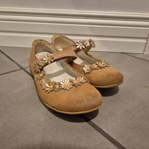 Ballerinat tyttöjen käyttöön sopivat. Kenkien päällinen on tikattu ja varustettu pienellä rusetilla, keino nahka.( Kappahl )