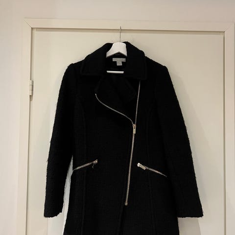 Siisti, musta villakangastakki. Isot napit ja pari nepparia. Hihat verrattain kapeat.