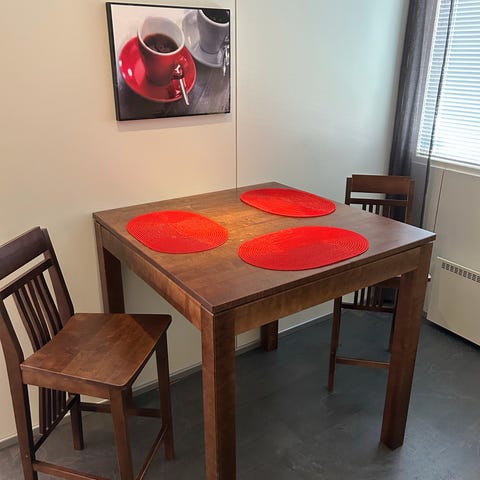 Hyväkuntoinen baaripöytä ja 3 tuolia. Nouto Kokemäeltä.