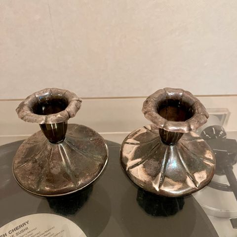 Myydään käyttämättömät hopeiset kynttilänjalat.