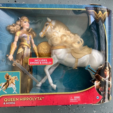 Wonder woman and her horse new in box. Damage on the box, check the pictures. Big box!