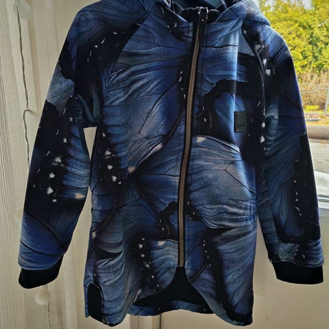 Molo Kidsin siistikuntoinen bomber-tyylinen softshell-takki välikauteen. Takissa korkea kaulus, irroitettava huppu, taskut vetoketjulla. Malli: cloudy blue, softshell takki.