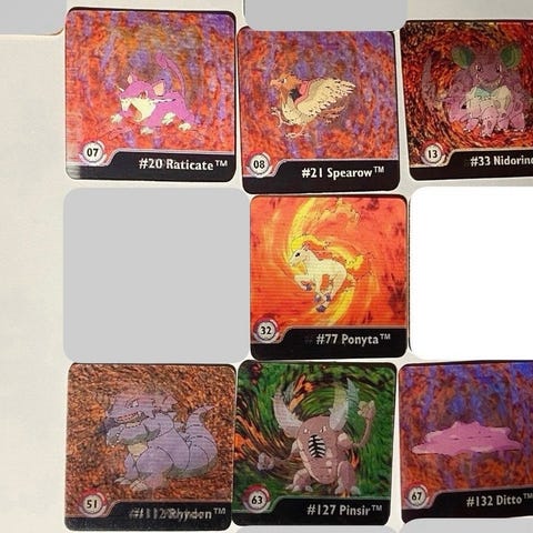 Myydään joko settinä (tarjoa) tai kappalehintaa (5e/kpl). Muutama arvokkaampi on joukossa; Pikachu, Latios ja Latias, jotka lähtevät 50e kpl hintaan.